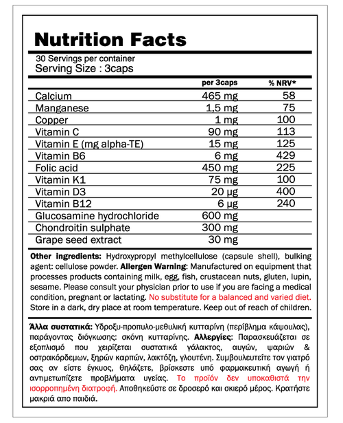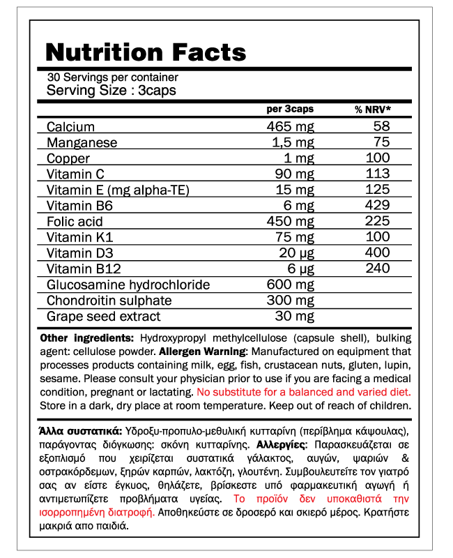 <ul><li>Η αυξημένη πρόσληψη συστατικών όπως το ασβέστιο, η γλυκοζαμίνη, η χρονδροϊτίνη συμβάλλει στη διατήρηση της οστικής πυκνότητας στη γνάθο, ενώ υποστηρίζει και τους συνδετικούς ιστούς (ούλα)</li><li>H Βιταμίνη D συμβάλλει στη διατήρηση της υγείας των δοντιών, ενώ επίσης βοηθά να μειωθεί η φλεγμονή στα ούλα και να διατηρηθούν υγιή.