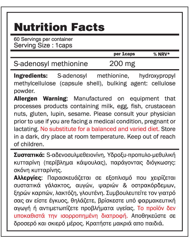 <p>Το SAMe (S-αδενοσυλ-μεθειονίνη) είναι ένα παράγωγο είναι ένα παράγωγο αμινοξέων που συντίθεται φυσικά στο σώμα από τα αμινοξέα(μεθειονίνη και τριφωσφορική αδενοσίνη (ATP). Το SAMe συμμετέχει στον σχηματισμό και τη διάσπαση διάφορων χημικών ουσιών στο σώμα, όπως πρωτεΐνες, διάφορες ορμόνες και η κατανάλωση του ως συμπλήρωμα έχει διάφορα πλεονεκτήματα</p>