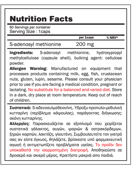<p>Το SAMe 200, κατασκευάζεται από την υψηλής ποιότητας πρώτη ύλη Adomix® και συσκευάζεται σε κάψουλα "DRcaps™" η οποία εξασφαλίζει ότι θα απελευθερώσει το περιεχόμενο της στο έντερο και όχι στο στομάχι, προστατεύοντας έτσι τη δραστική ουσία από τα οξέα του στομαχιού.</p>