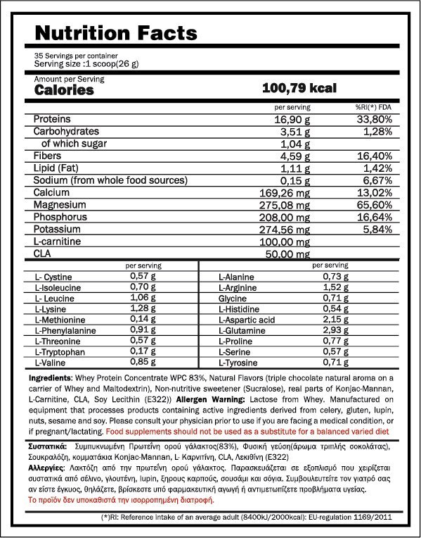 <p class="text-justify">Η πρωτεΐνη είναι από τα βασικά θρεπτικά, έχει μια ποικιλία φυσιολογικών λειτουργιών που είναι απαραίτητες ιδιαίτερα όταν γυμναζόμαστε. Η whey πρωτεΐνη είναι υψηλής ποιότητας, καθαρή πρωτεΐνη η οποία απορροφάται γρήγορα και διοχετεύει αμινοξέα στους μύες σας άμεσα, συμβάλλοντας έτσι στην παραγωγή ενέργειας κατά την άσκηση, στην προστασία από τη διάσπαση των μυών(μυϊκός καταβολισμός) και στην αποκατάσταση μετά την προπόνηση. Η Diet Whey έχει ένα πολύ καλό αμινικό προφίλ καθώς δίνει σημαντικές ποσότητες από όλα τα απαραίτητα αμινοξέα, συμπεριλαμβανωμένων των BCAA και της Γλουταμίνης, ενώ ταυτόχρονα περιέχει και φυτικές ίνες.</p>