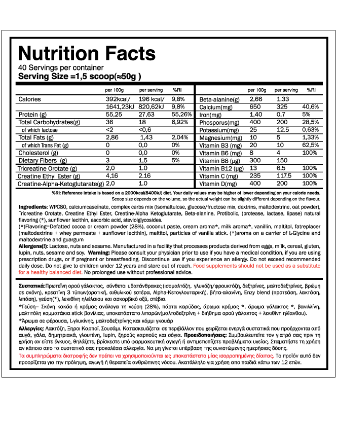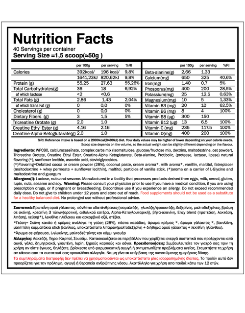 Δοσολογία:1 δόση(50 γραμμάρια) το πρωί και 1 δόση μετά απο την προπόνηση.