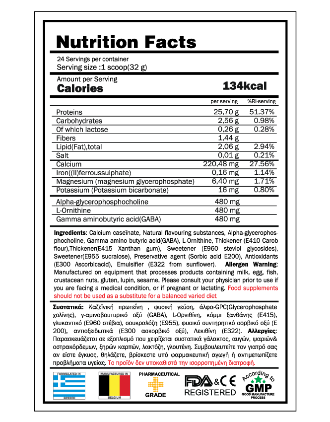<p>Επιπλέον η night protein είναι εμπλουτισμένη με:</p>